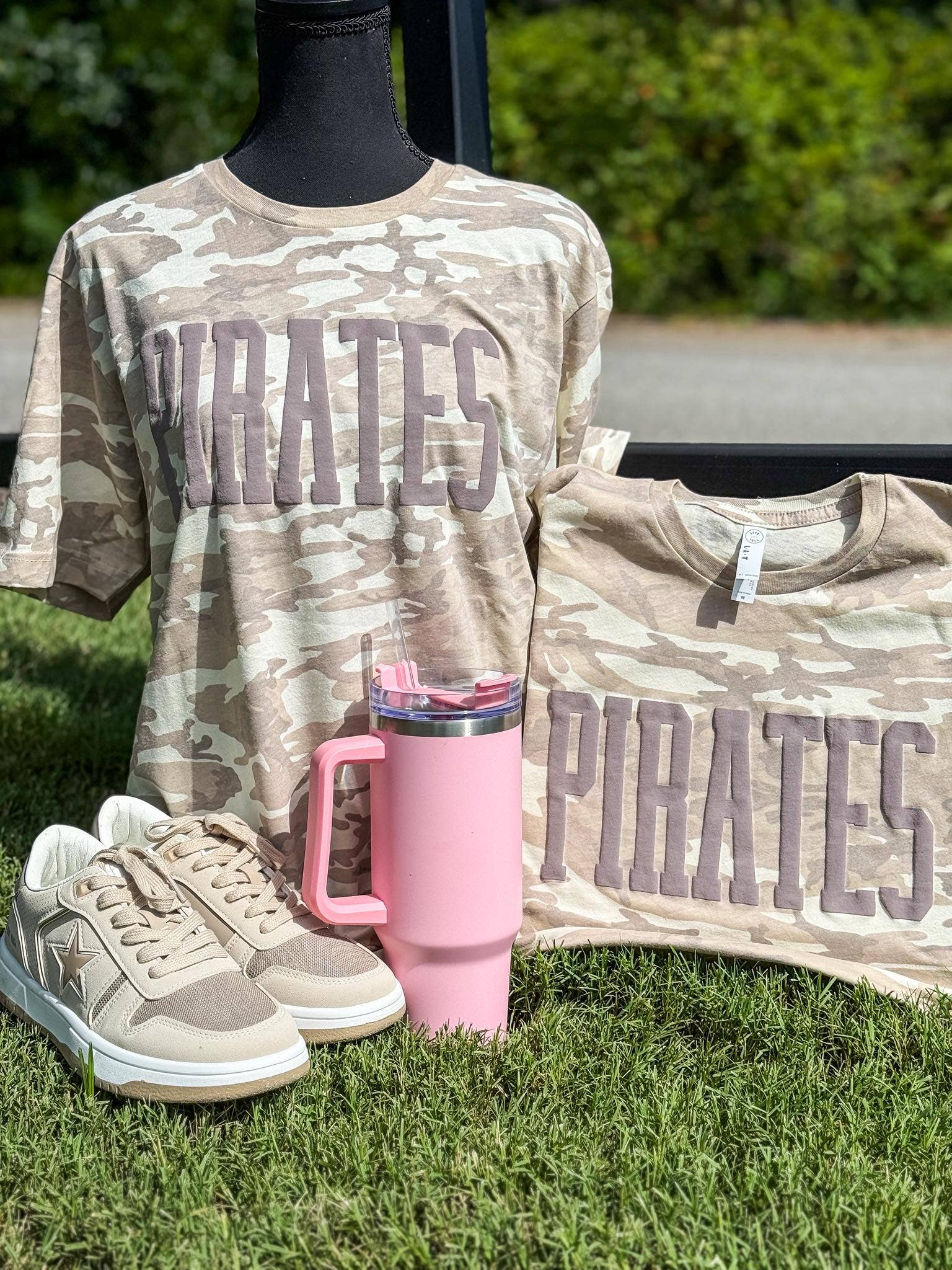 Our highly anticipated Natural Camo Team Tees are here — and they’re everything you hoped for and more. Screen printed with bold puff ink, these tees bring just the right amount of pop to a neutral, game day-ready look. Screen printed with puff ink
